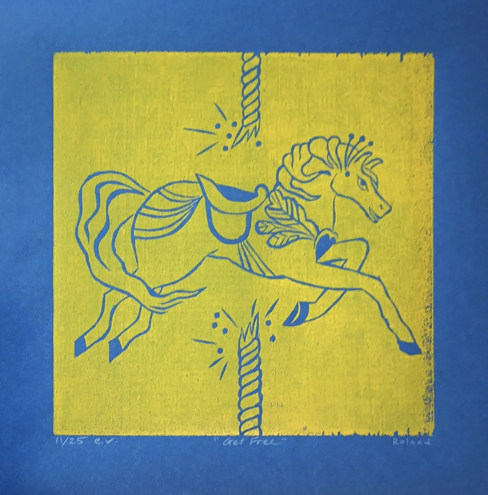 Woodcut reduction print collaboration with Aïcha Idelcadi